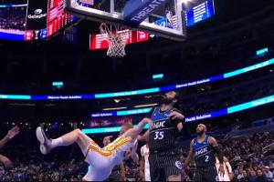 比赛末节,比塔泽在防守中从身后一把拉下空中的兰代尔,致其膝盖着。