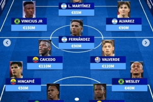 前锋:维尼修斯(1.5亿欧)、劳塔罗(8500万欧)、阿尔瓦雷斯(9000万欧)