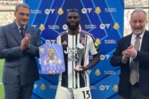 体育资讯4月7日讯 尤文在本轮意甲对阵热那亚,前锋博加在赛前领取了意甲3月最佳球员奖杯。